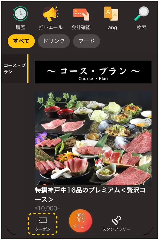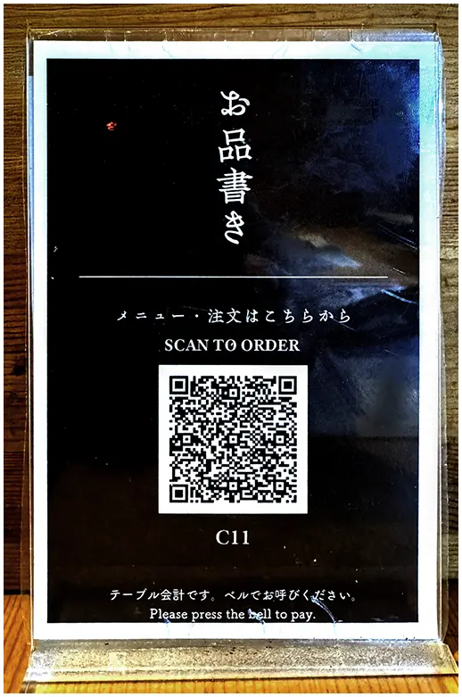 来店時にテーブルにあるモバイルオーダーのQRコードを読込。