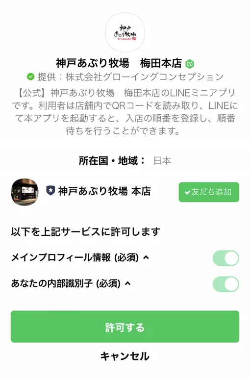 友達追加に✓を入れ、許可する(2回目以降は不要です)