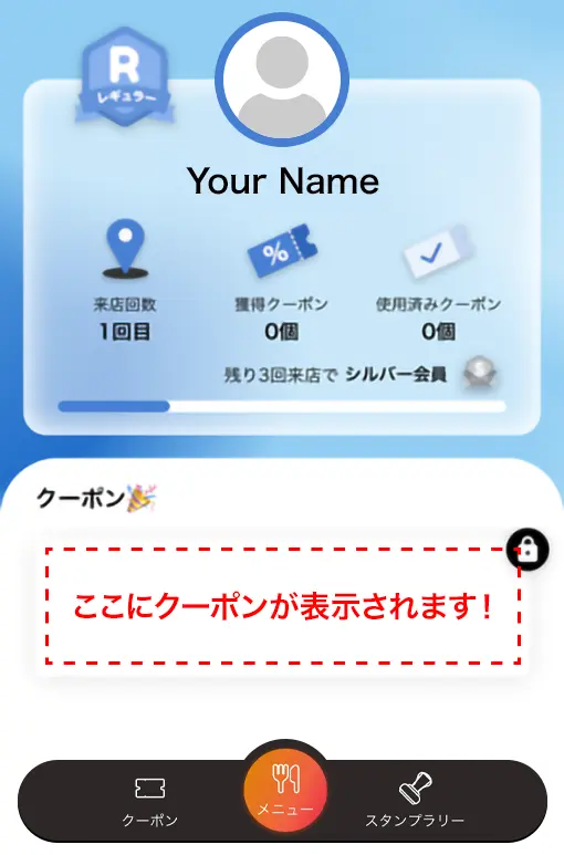 来店時に3,000円以上のご利用で来店ポイント付与及びクーポン利用可。プラチナランクまで到達されると特典が保持され以降の来店ごとに毎回プラチナランク特典が利用できます。会員ランクの有効期限はありません。
